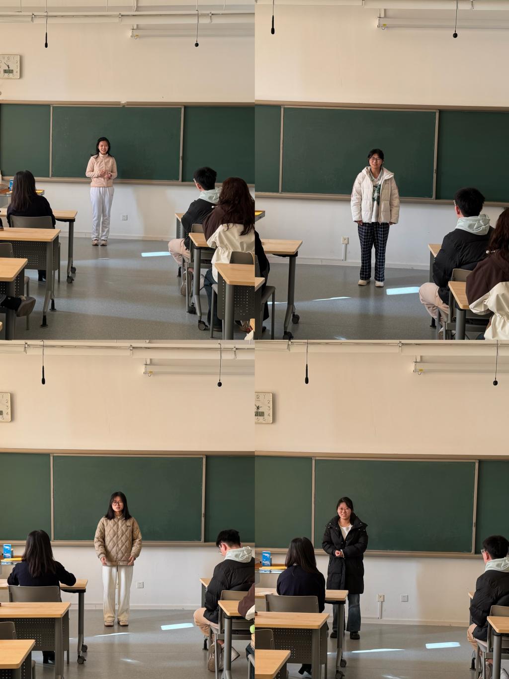 讲座结束后,活动进入跨级交流环节。24级与25级同学们在黑板上写下自己的名字并做自我介绍,热情介绍家乡、分享学习经历与兴趣爱好,现场互动频繁,气氛轻松。