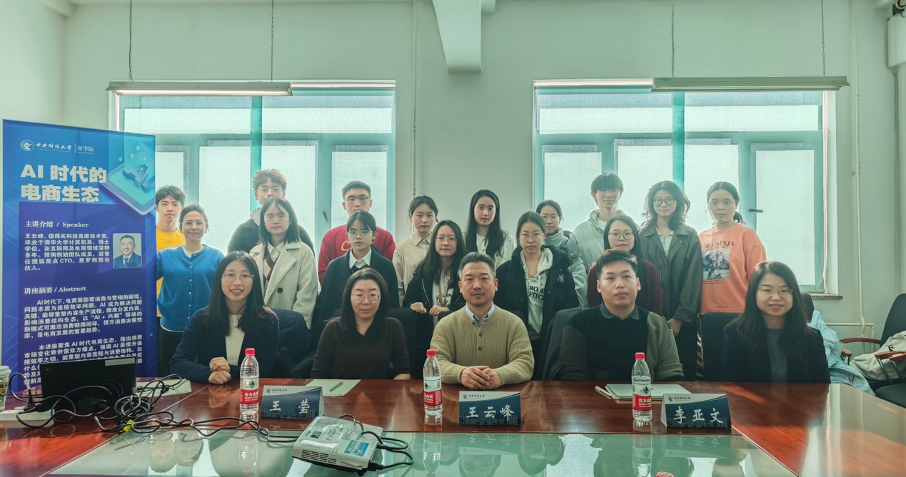 On December 15, 2024, CUFE Business School hosted a lecture titled "E-commerce Ecosystem in the AI Era" in Room 615 of the main teaching building at the College South Road Campus. The keynote speaker was Dr. Wang Yunfeng, Chief Technology Officer of Zhidemai Technology.